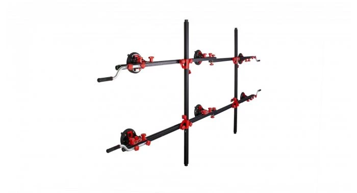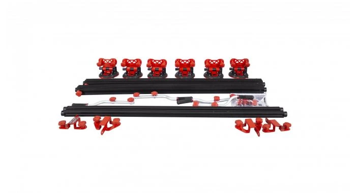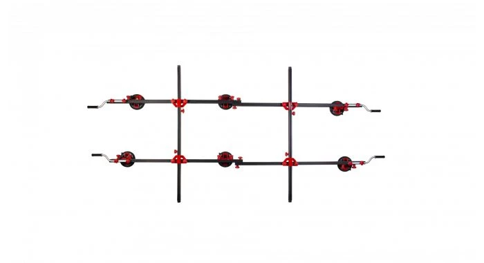 Il est constitué d’un ensemble de deux profilés en aluminium extrudé, renforcés, rétractables et ajustables de 165 à 320 cm et de deux traverses perpendiculaires qui favorisent la robustesse et la stabilité de l’ensemble, en particulier lors de la manipulation des pièces les plus lourdes.