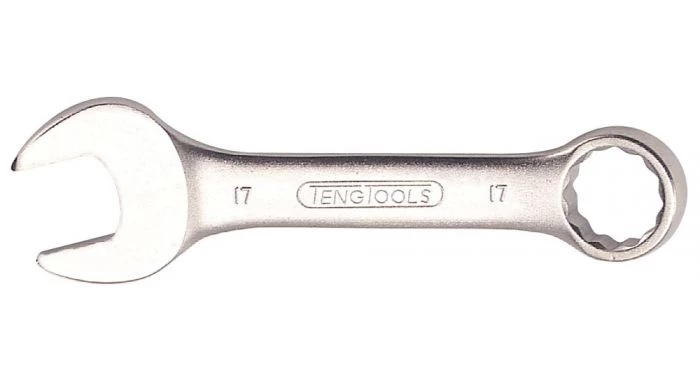 Clés mixtes Stubby. Modèle extra courte. Acier chrome vanadium Teng Tools. Trempé et chromé. Tête polygonale inclinée à 15°. Taille: identique des deux côtés.