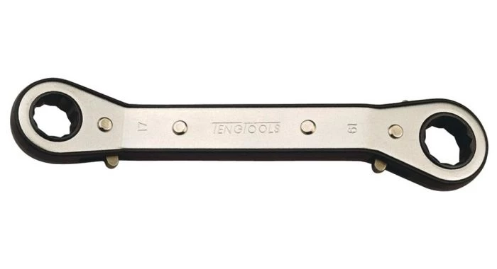 Clés polygonales à racagnac. Modèle RORS. Acier chromé Teng Tools Vanadium. Différentes tailles de chaque côté de la clé. Avec levier pour changement de direction. Angle de 25°.