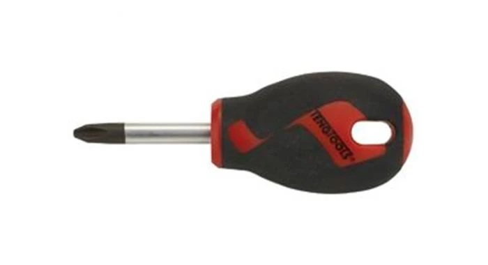 Tournevis « Stubby » pour tête de vis PZ. Lame: ronde en acier TT-MV PLUS. Pointe: noire. Poignée ergonomique deux composants avec trou de suspension.