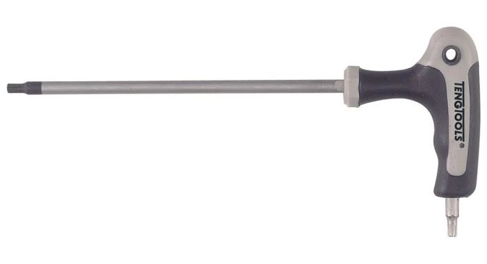 Clé TX-TPX de forme L avec poignée en T. Acier chrome vanadium. Noir phosphaté. Avec le type TPX du côté court de la clé.