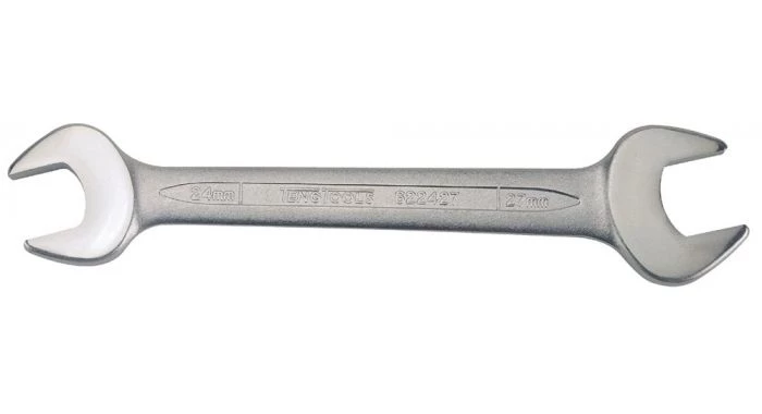 Clés à fourche. Normes DIN 3110 -ISO 3318. Acier chromé Teng Tools vanadium. Tailles différentes des deux côtés de la clé. Tête inclinée à 15°. Teng Tools (62…) ou Izeltas (IZ…).