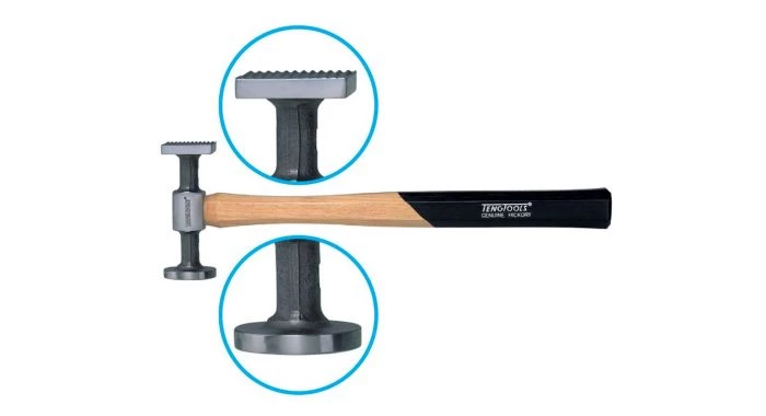 Marteau à débosseler. Très bonne qualité avec manche hickory en bois. Modèle avec tête ronde plate et tête carrée plate.