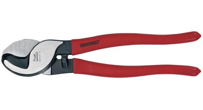 Pince coupe-câble. Chrome molybdenum. Pour câbles électriques en cuivre et aluminium. Peut être utilisée d’une seule main. Poignées avec revêtement vinyle.