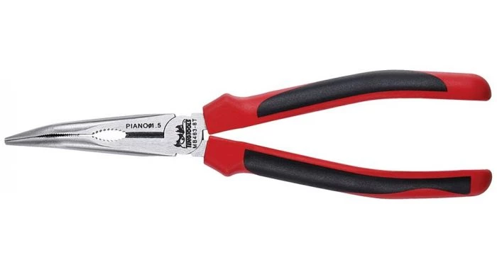 Pince à long bec plié. Bec, 45° coin. Poignée Ergonomique TPR de deux composants.