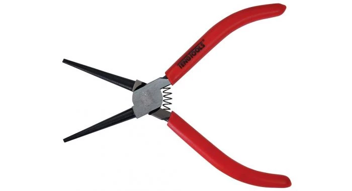 Pince à long bec rond. Acier chromé molybdenum. Finition polie. Avec ressort. Bec lisse. Poignées revêtement vinyle.