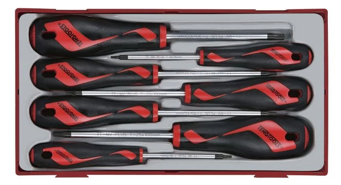 Set de 7 tournevis TX/TPX. Acier TT-MV PLUS. Manche ergonomique deux composants avec trou de suspension. TC tray.