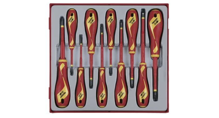 Jeu de 10 tournevis 1000-V plat, PH et PZ dans TTD tray.